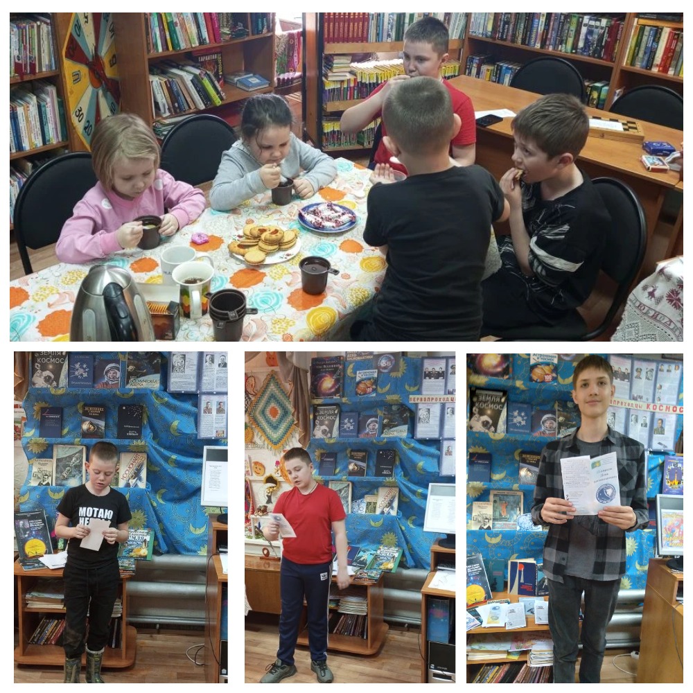 Одним из ярких моментов стало чтение стихов о космосе. Дети читали произведения известных авторов, посвящённые звёздам, планетам и полётам в космос. Звучали строки о бескрайних просторах Вселенной, о мужестве космонавтов и о мечтах стать исследователем галактик. Завершилось мероприятие веселым чаепитием, где звучали разговоры о космосе и мечтах.