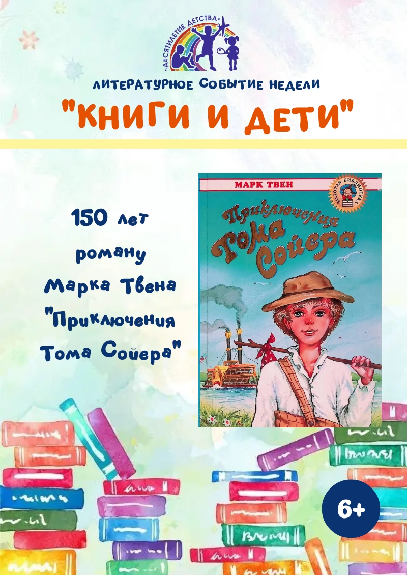 150 лет назад, в 1876 году, было опубликовано одно из лучших детищ Марка Твена «Приключения Тома Сойера». Это история обычного веселого мальчишки, фантазера и мечтателя, озорного, неунывающего, доброго и справедливого, умеющего превращать унылые будни в необыкновенно увлекательные яркие и веселые дни. У него есть близкий друг Гек Финн. Том с друзьями постоянно попадает в разные истории, сталкивается с интересными, захватывающими и опасными приключениями, а однажды становится свидетелем преступления. Чтобы спасти несправедливо обвиненного человека, мальчик решается на отчаянный поступок. В ходе приключений он успевает найти свою любовь, стать свидетелем убийства и разоблачить убийцу, уплыть на необитаемый остров, заблудиться в пещере и благополучно выбраться из нее, найти драгоценный клад стоимостью 12 тысяч долларов и разделить его со своим другом Геком.
