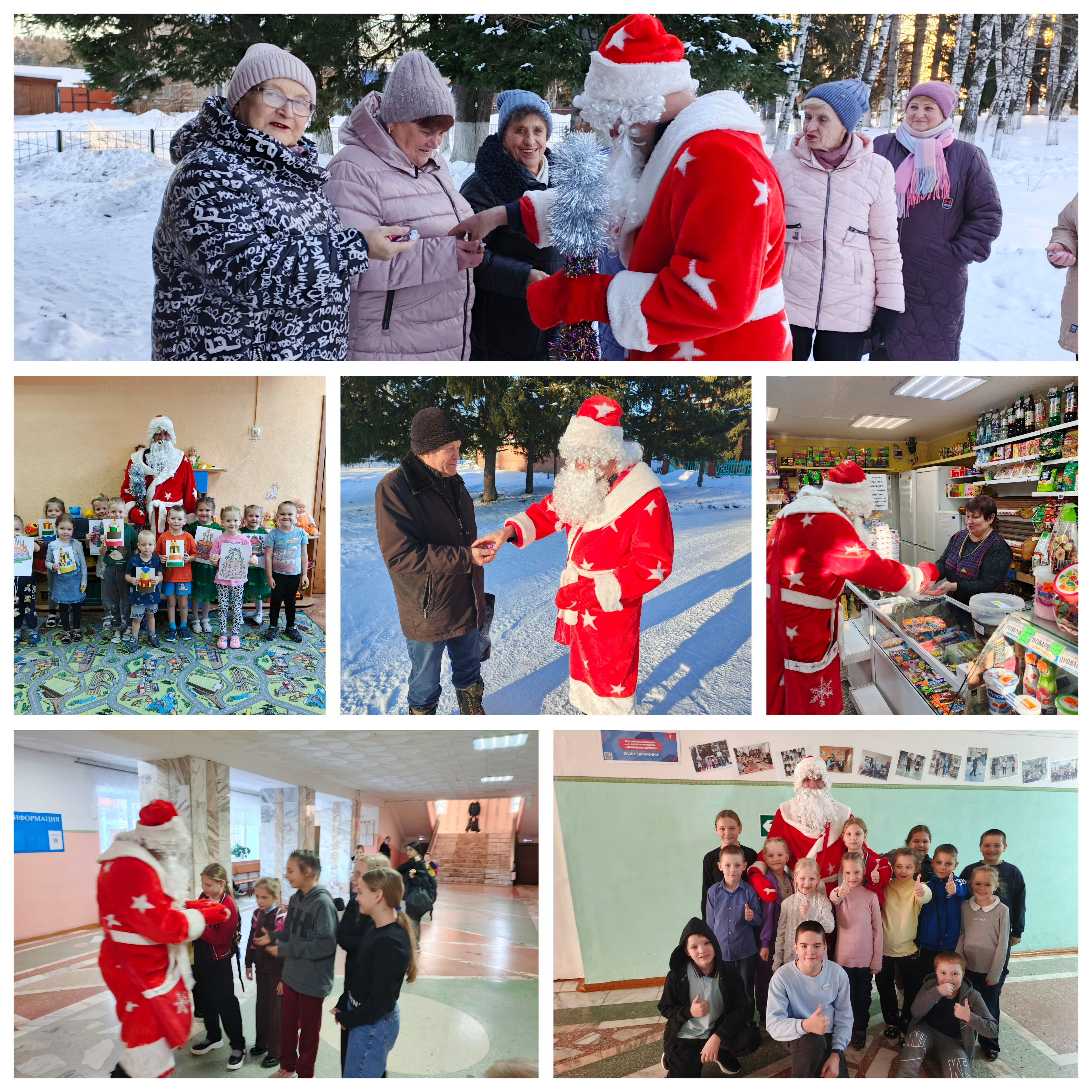 А вот к нам приходил, да еще не с пустыми руками! Все принимают подарки на именины, а наш Дед Мороз наоборот - всем подарки да угощения раздавал! Веселый, активный дедушка Мороз обошел сегодня наше село, угощая всех встречных - взрослые и дети читали стихи и пели песни Дедушке.