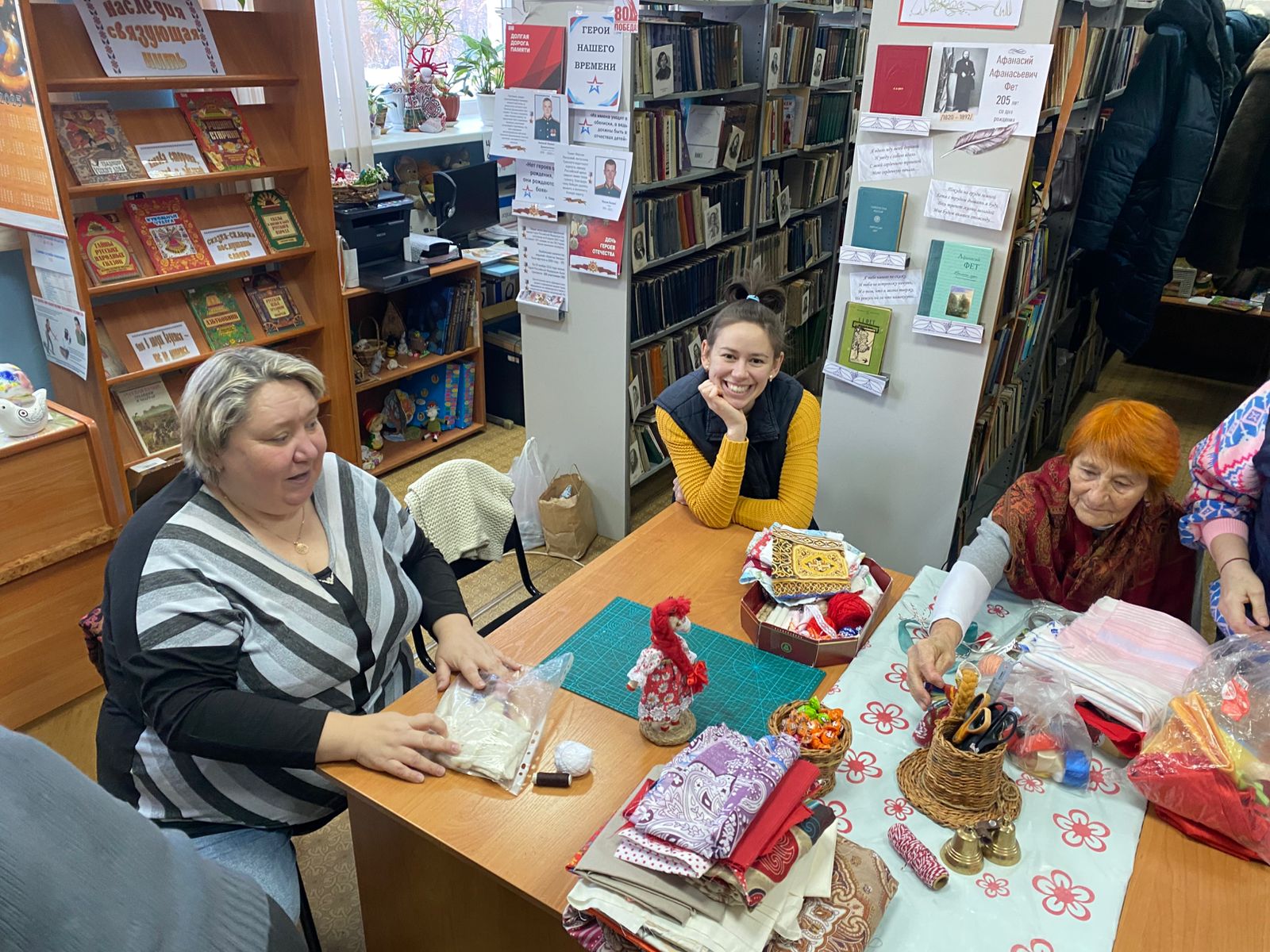 Мастер-класс для взрослых читателей Копыловской библиотеки по изготовлению лошадки провела умелица по изготовлению народной обережной куклы томичка Светлана Николаевна Стукаленко. Эту куклу она придумала сама, на основе полученных ею знаний. Библиотека с трудом разместила всех желающих сладить для себя символ предстоящего года. Процесс изготовления был непростым и занял четыре часа. Как говорится, даже не успели почаёвничать. Процесс захватил всех с головой. Даже стало жарко, не смотря на прохладу в библиотеке. Нетронутый кипяток остыл, но все участницы расходились довольные результатом своего труда.
