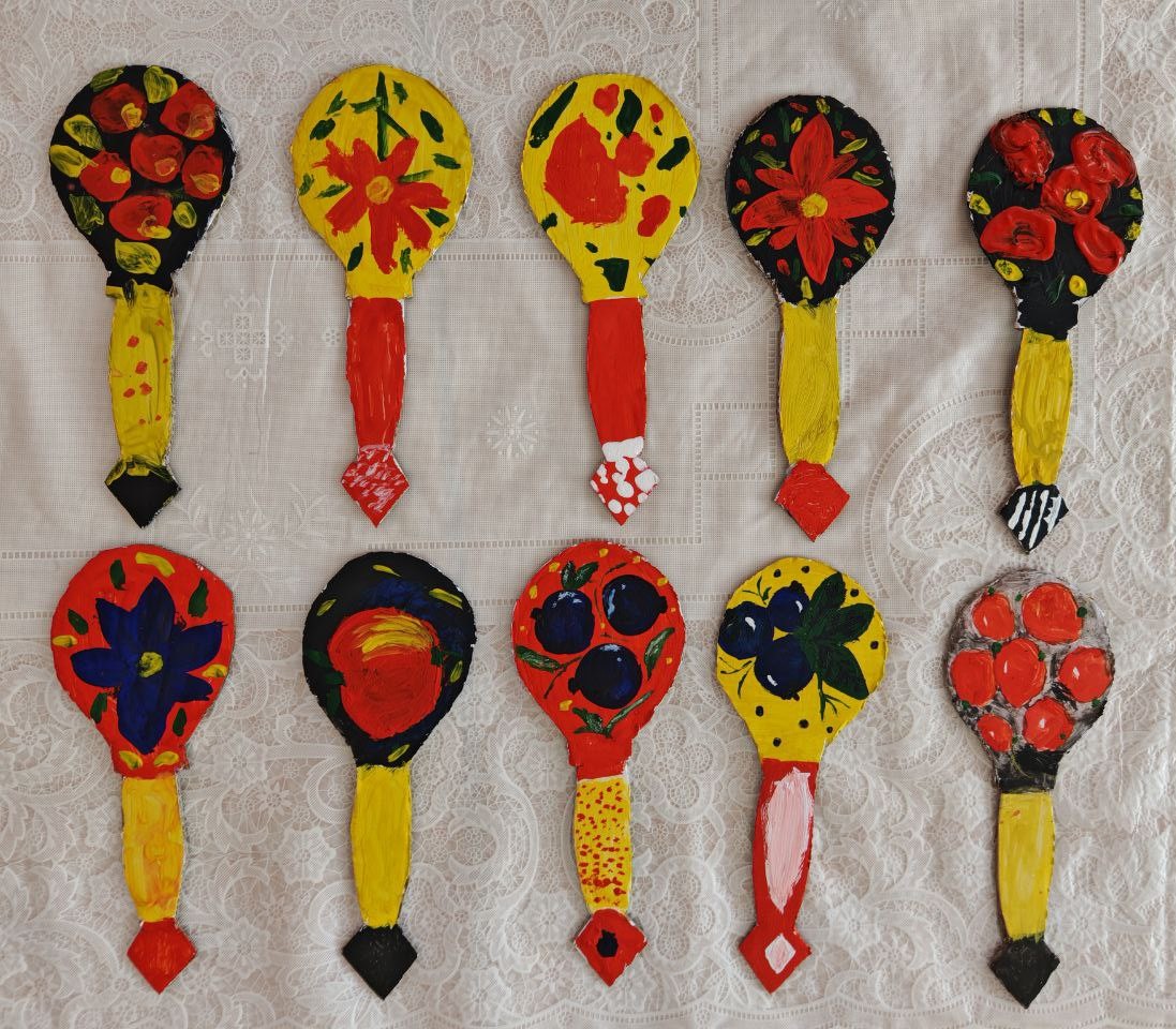 В завершение мероприятия ребята расписали ложки из картона, придумав свой неповторимый узор.