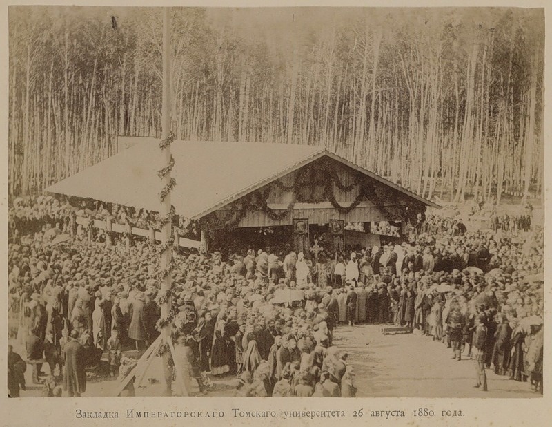 В 1888 году открылся и первый университет в Сибири. «Сибирская газета» писала: «Еще с раннего утра толпы народа пешком и в экипажах спешили к университету, передний фасад которого был декорирован гирляндами из зелени. Перед зданием, убранным венками из живых цветов, стояла разнообразная толпа…» (СГ. 1888. № 56).