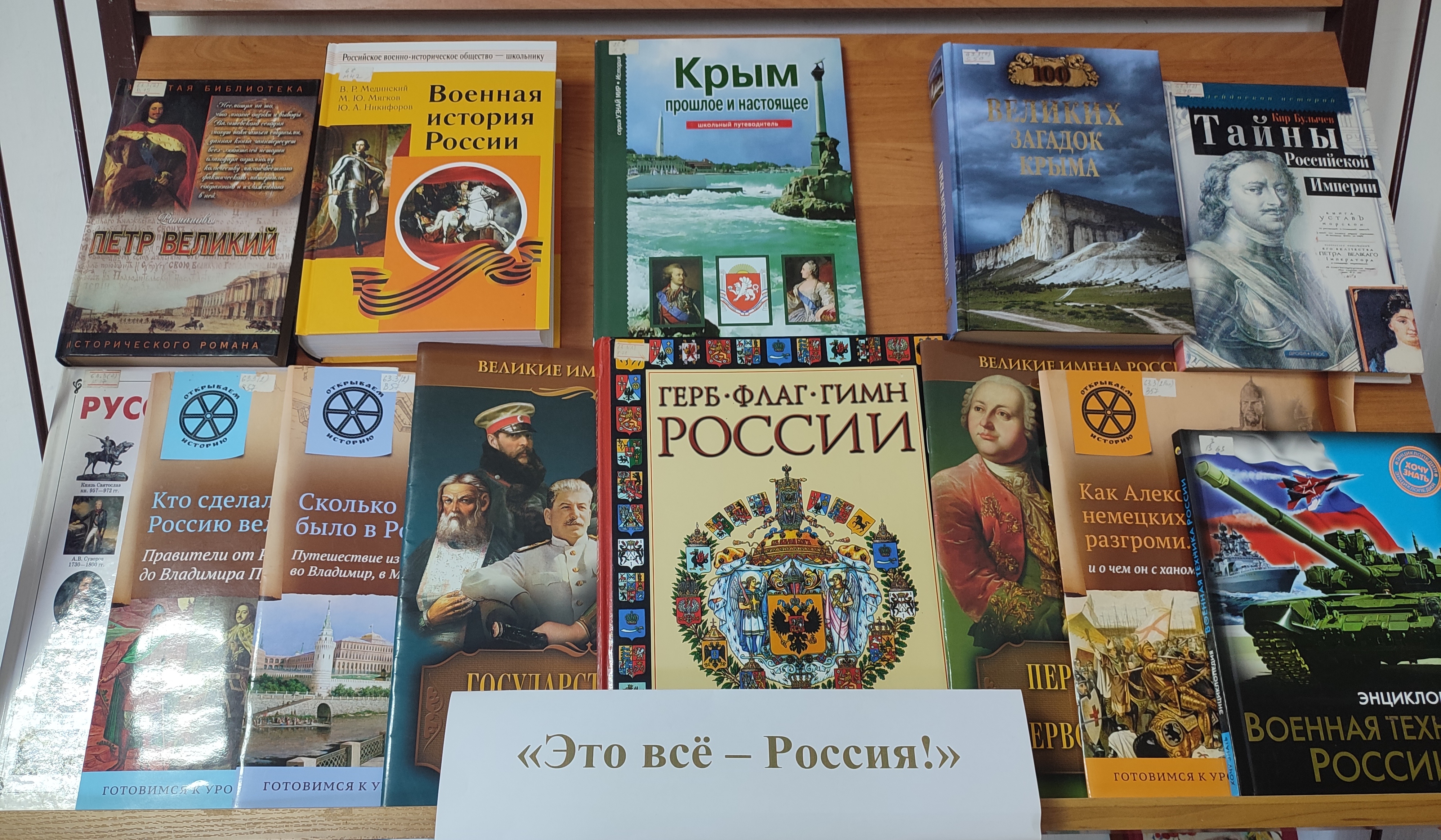 Для читателей в Нелюбинской библиотеке работает книжно-иллюстрированная выставка «Это всё – Россия!», на которой представлены книги, связанные с историей и событиями в нашей стране.