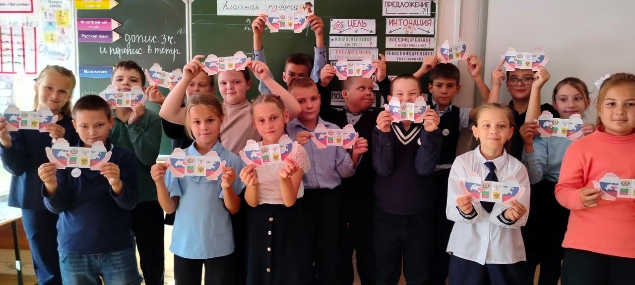 Школьников познакомили с историей нового праздника, рассказали о том, как жители освобожденных регионов определили свой политический и гражданский статус, проголосовав за вхождения в состав нашей страны. Ребята узнали о значении присоединения для всех жителей новых регионов и, конечно, о значении праздничного события для всей страны. После, с младшими ребятами создали информационные буклеты раскладушки, а со старшеклассниками оформили интерактивную газету, посвященную этому замечательному дню.
