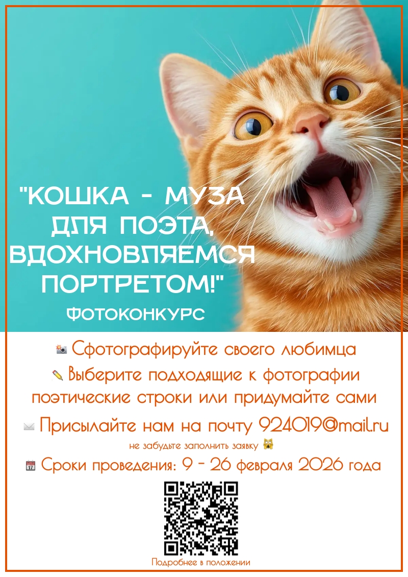 Афиша к конкурсу «Кошка — муза для поэта, вдохновляемся портретом!» для печати