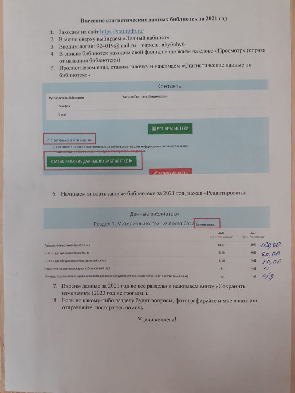 ЗАПОЛНЕНИЕ СТАТИСТИЧЕСКИХ ДАННЫХ НА ПОРТАЛЕ РГДБ