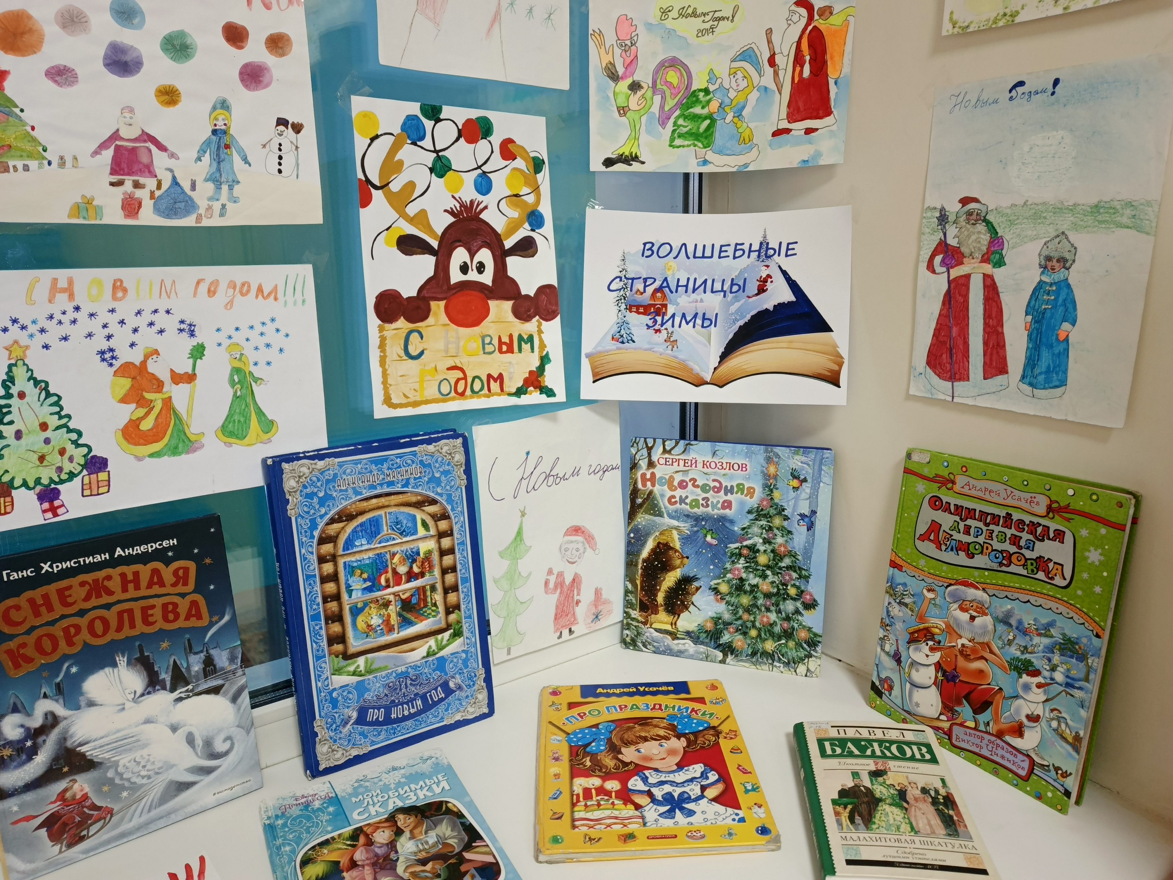 В преддверии Нового года Новорождественской библиотекой для детей детского сада и их родителей оформлена книжная выставка-обзор «Волшебные страницы зимы». На выставке представлены книги, которые помогут окунуться в мир чудес и волшебства, узнать много интересного о самом безмятежном времени года – зиме, новогодних и рождественских праздниках, создать праздничное настроение и весело встретить Новый год. Вниманию читателей представлены не только книги, но и творчество наших ребят – рисунки на новогоднюю тему.